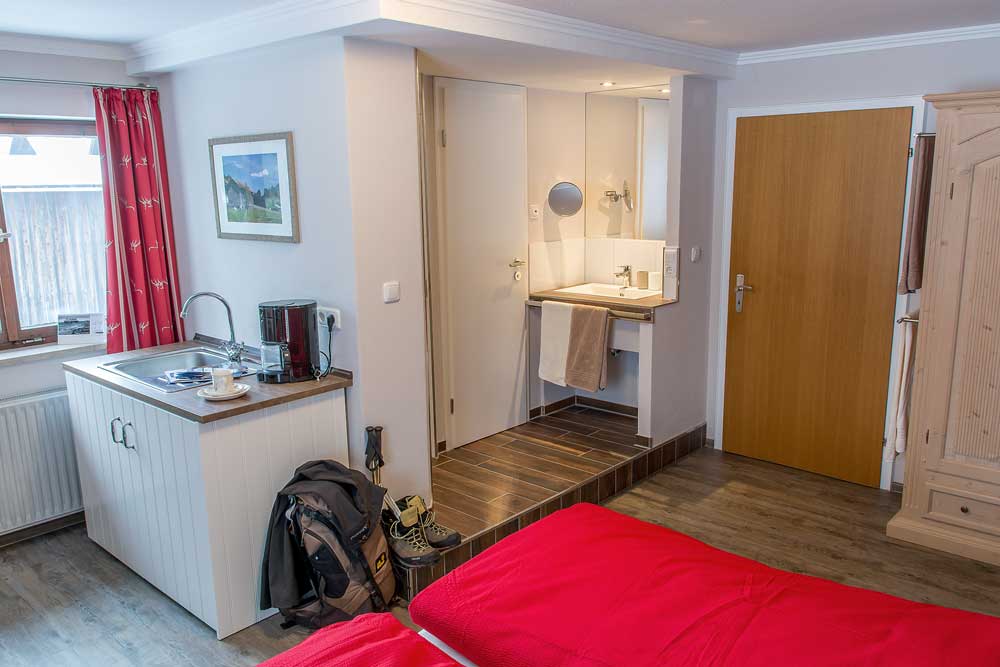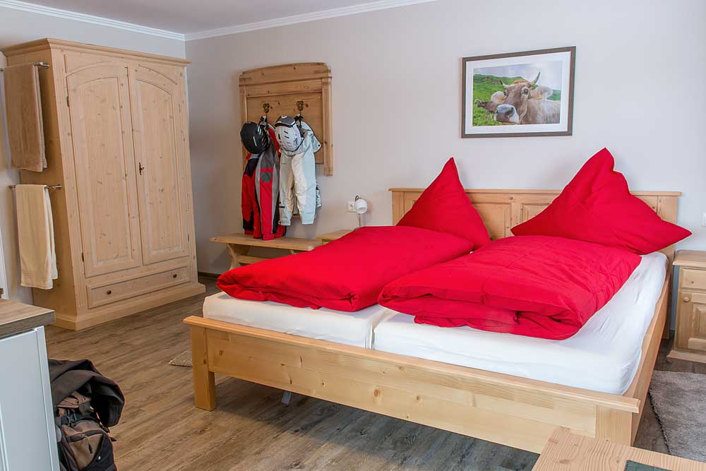 Vielen auch unter seinem alten Namen -Rotspitz- bekannt. Etwa 25 qm großes Nichtraucher Doppelzimmer in Südostlage. Aus dem Zimmer bietet sich ein Panoramablick in Richtung -Bergwelt Tannheimer Tal- und auf den Grünten. Der Zimmerpreis beinhaltet unser reichhaltiges Frühstücksbuffet. Mindestbuchungsdauer 2 Tage/Nächte