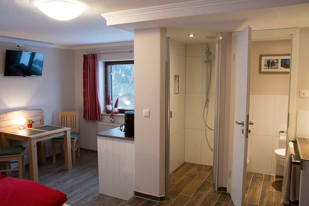 Knapp 20 qm großes Nichtraucher Doppelzimmer in Südostausrichtung mit etwa 4,5 qm großem Balkon. Der Zimmerpreis beinhaltet unser reichhaltiges Frühstücksbuffet. Mindestbuchungsdauer 2 Tage/Nächte. Unser Zimmer Hahntennjoch kann durch einen kleinen Vorflur mit dem Zimmer Fernpass verbunden werden und so zur Mini Fewo umgestaltet werden. Ein Herd und/oder Kochplatten sind allerdings nicht vorhanden.
