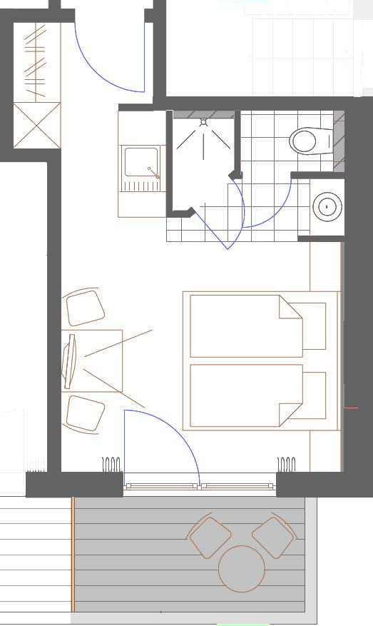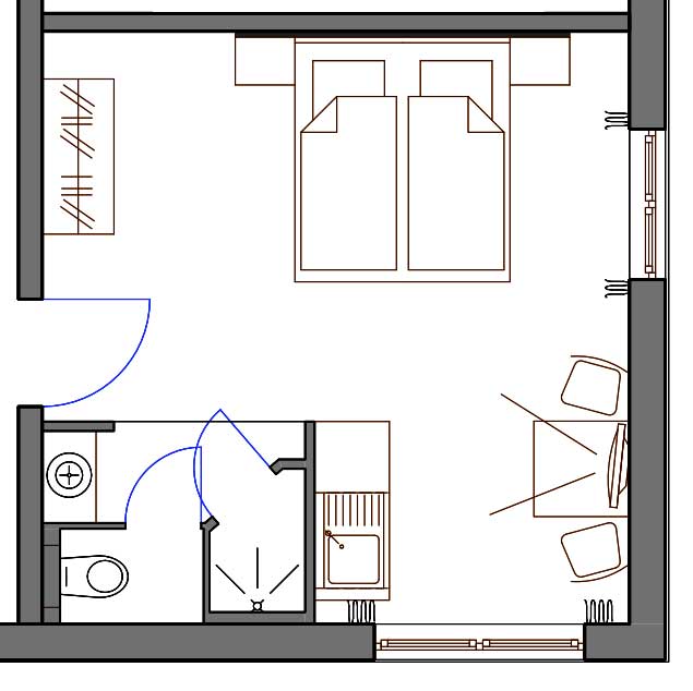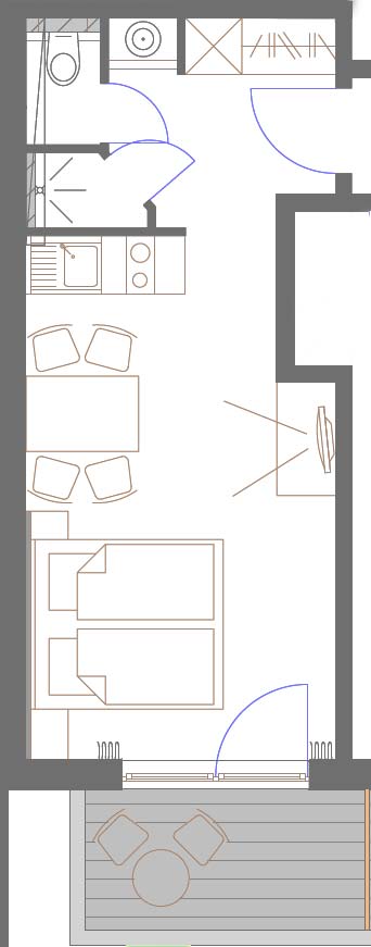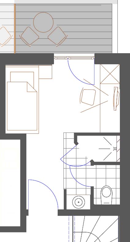 Unser etwa 15 qm großes Nichtraucher Einzelzimmer verfügt ebenfalls über einen etwa 4,5 qm großen Balkon. Der Zimmerpreis beinhaltet unser reichhaltiges Frühstücksbuffet. Das Einzelzimmer verfügt über keine Pantryküche. Mindestbuchungsdauer 2 Tage/Nächte.